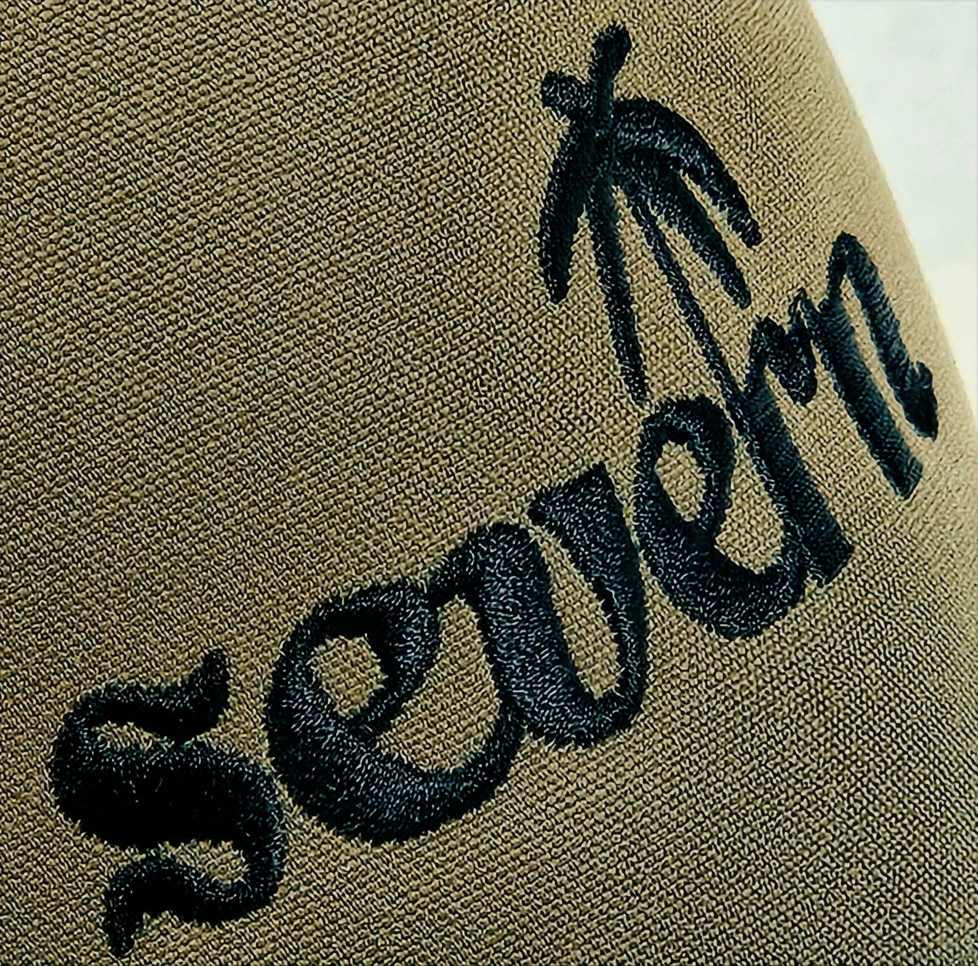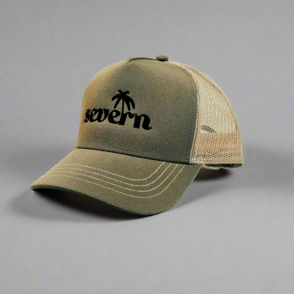 This khaki-and-stone beauty reflects SVN7’s connection to land, craft, and considered design. Stamped with the Palm Severn mark, it’s a cap for those who walk a little slower, look a little closer.