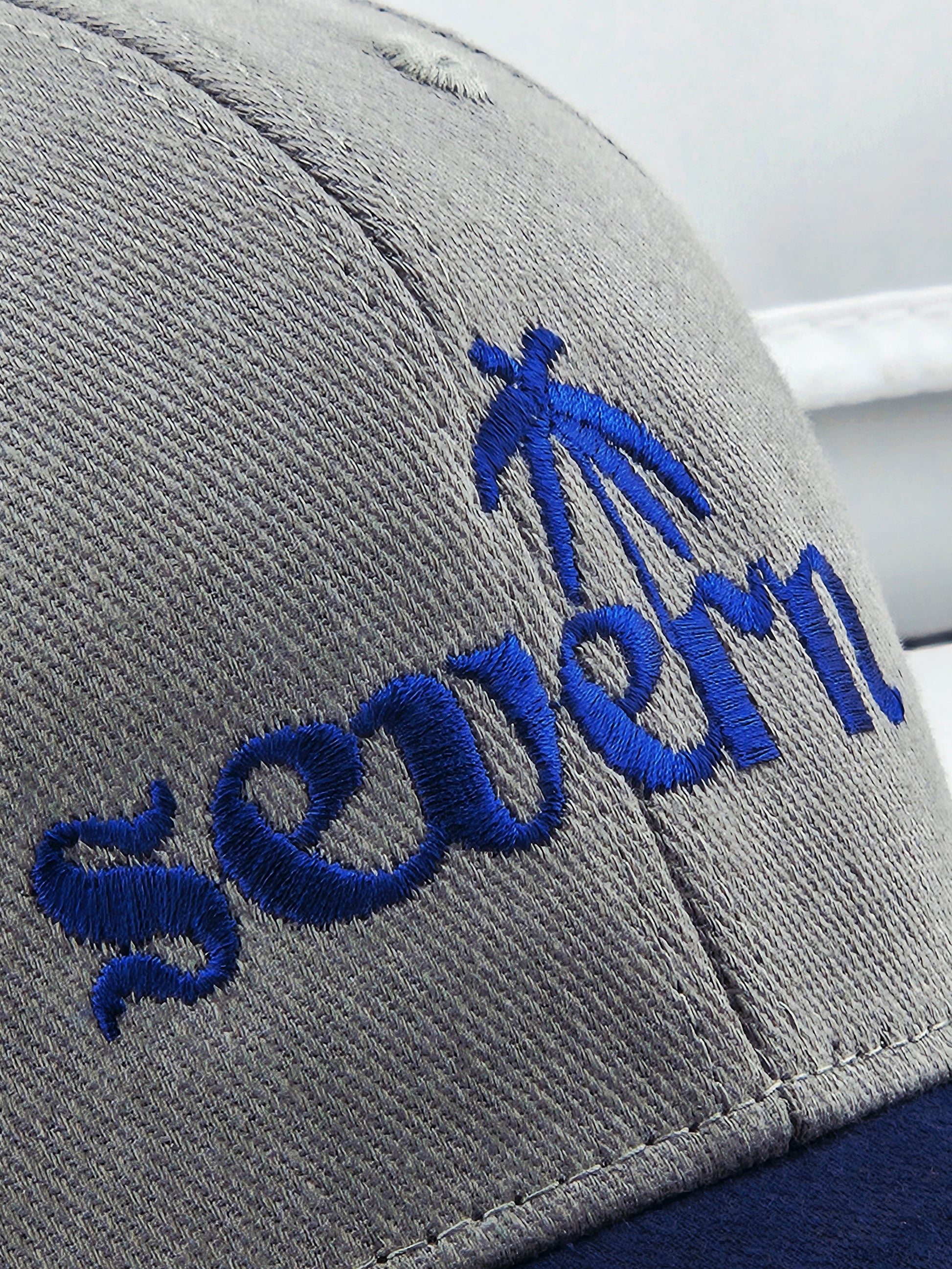 Two-tone navy and grey with deep-blue stitching - calm, balanced, and quietly confident.