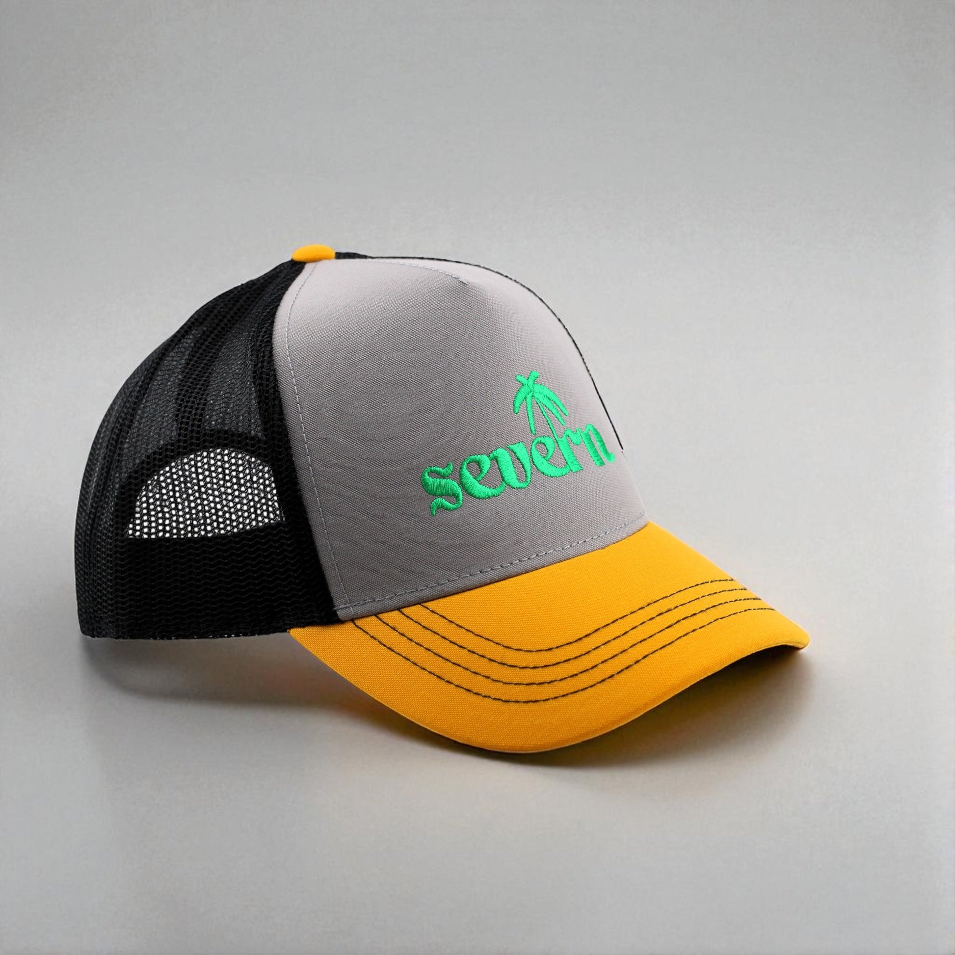 Washed-out tones and warm fades meet SVN7’s mission of ethical headwear. With the signature Palm Severn embroidery up front, this cap brings slow travel, vintage finds, and sun-faded style together.
